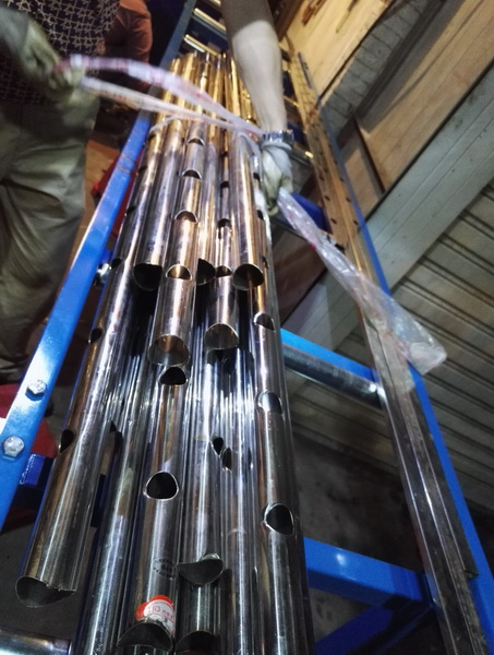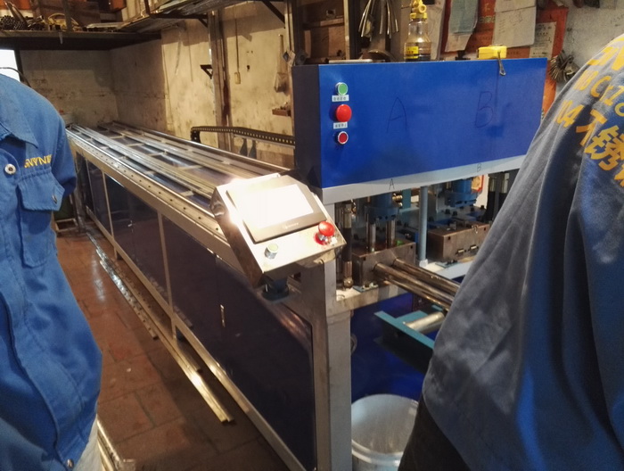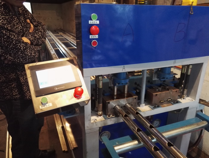 德川機械—數(shù)控全自動沖孔機,38圓管沖25.5孔,漳州用戶現(xiàn)場