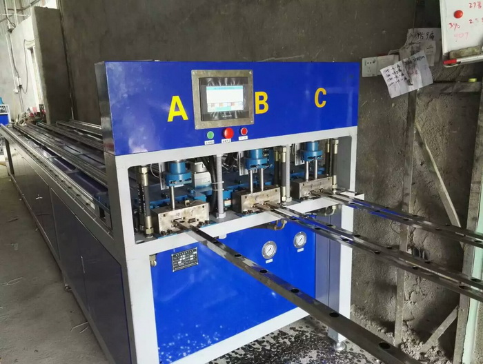三工位數(shù)控全自動不銹鋼沖孔機(jī),三工位同時(shí)工作,一次沖6支管,每個(gè)油缸可單獨(dú)控制沖全孔、半孔,大大提高不銹鋼防盜網(wǎng)沖孔效率,行業(yè)首創(chuàng),專利產(chǎn)品...