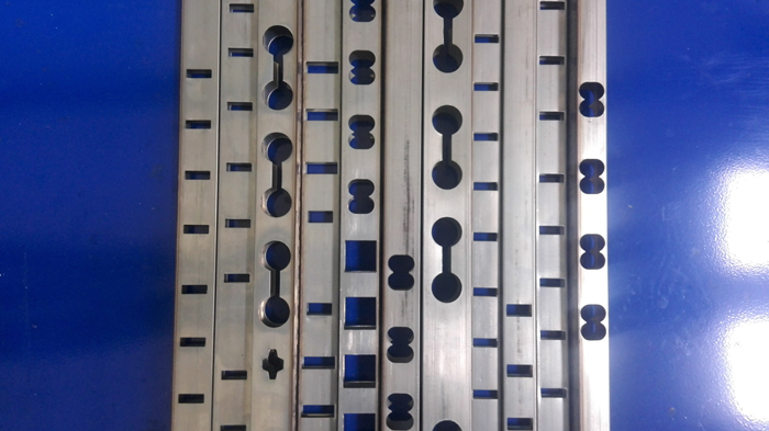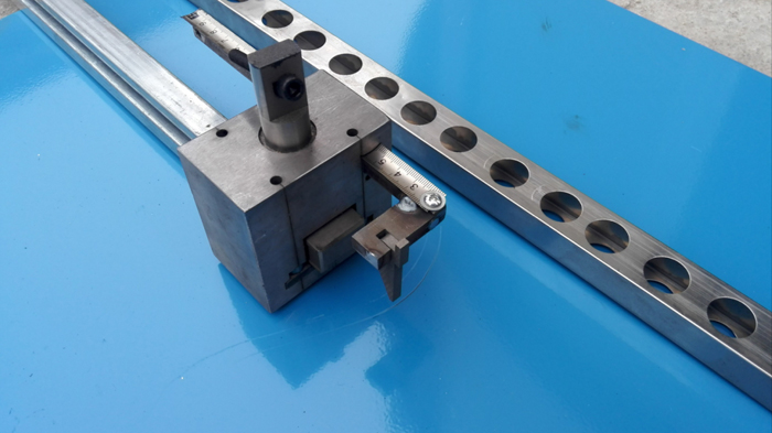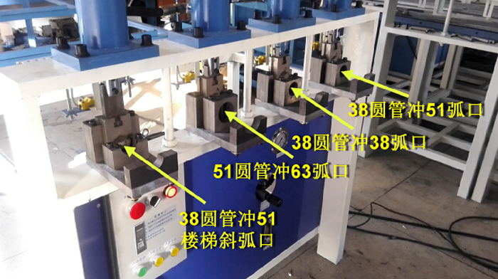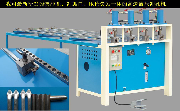 6、模具自帶刻度尺定位桿,沖孔不需要畫線,可以任意調節(jié)孔距,任意調節(jié)沖單面孔或沖穿孔,可沖圓管、方管;一天可沖管材300條或防盜網400~500平方;